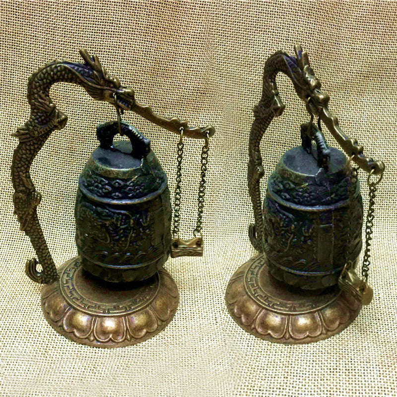 Make your house interior look elegant with this buddhist bell chinese geomantic dragon carved! It is made of zinc alloy and is vintage.